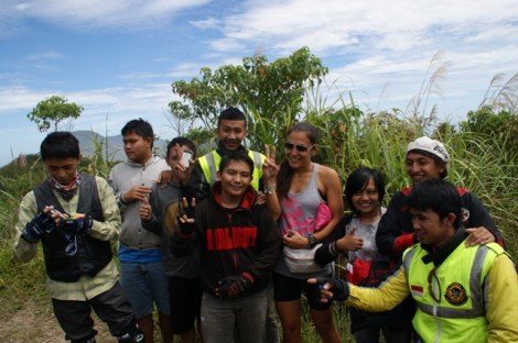 Climbing Mount Mahawu is much easier as there is good car accessibility to various points on the mountain and you can therefore start climbing from whichever point you wish. Mount Mahawu is opposite Lokon and is a well-known place for bird watching and plant watching. We were impressed with the Pitcher Plan flower/Nepenthes (a carnivorous orchid) which can be found near the rim crater. The view from Mt. Mahawu was also breathtaking as we could see Manado, Tangkoko Nature Reserve and even the Togian Islands! On the way down, we met a group of motorcyclists who came from Manado for a visit to Lokon and they wanted to have a photo with us. How sweet of them!