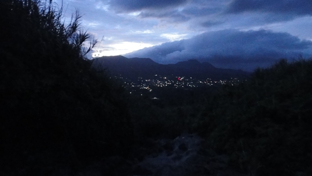 The lava was slippery and the way up especially in the dark was particularly tricky for the inexperienced trekker. Especially if you are not well prepared, and don’t have proper trekking boots, long comfortable pants as you go through bushes and of course a torch (I managed to forget all three of the above!).