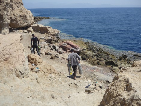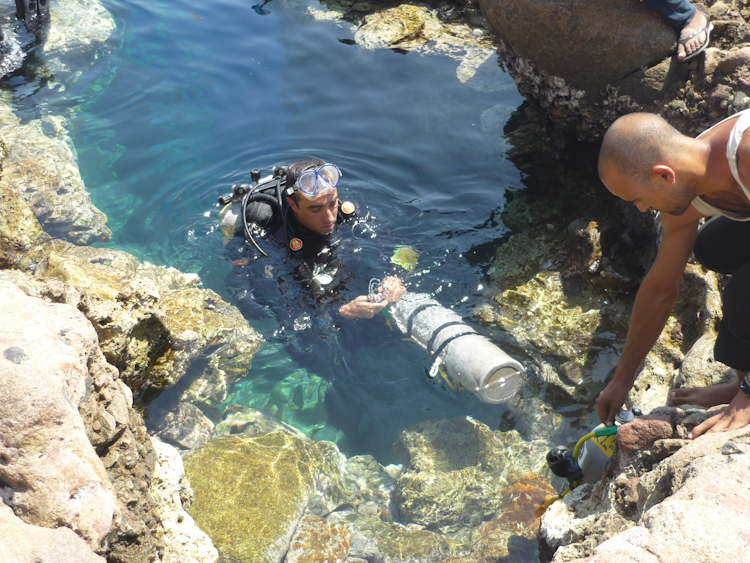 In September 2012, I visited Dahab, which is situated on the southeast coast of the Sinai Peninsula, in Egypt. Being a technical trimix diver, I was drawn to the “Mecca” for technical divers, as it is widely recognized for its numerous deep-dive sites. Also, decompression stops in Dahab can be spent observing life on the reef, instead of “hanging” lines in the empty depths. There are many interesting deep dive sites, even ones that are accessible using a 4×4 jeep.