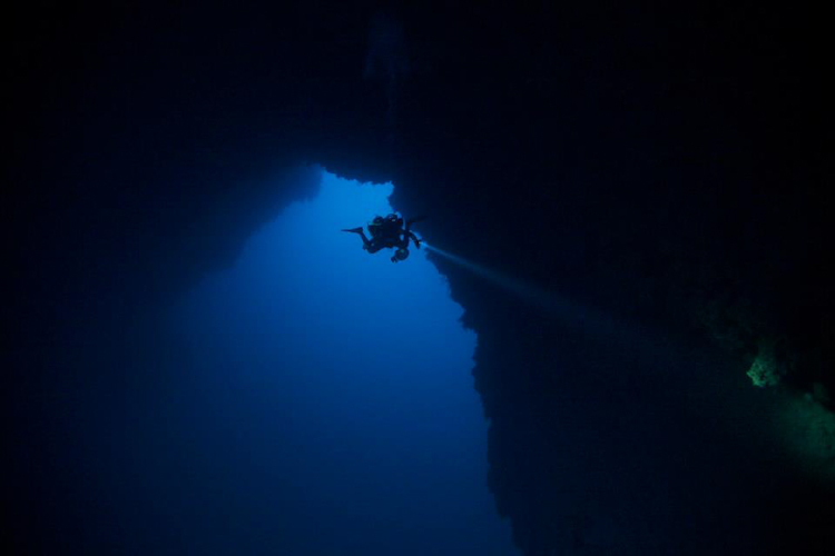 The most famous dive site, of course, is the Blue Hole, where at depths ranging from 52m till 120m, the famous arch is to be found. One can dive in the arch either on air or on normoxic trimix, at a depth of 60 meters and the view of the arch underwater is simply breathtaking. Recreational divers however should resist the fatal temptation and stay within recreational diving limits! The bottom of Blue Hole is also an interesting dive at a depth from 90m till 120m below the arch, a dive that requires hypoxic trimix, a travel gas and two deco gases. Moreover the dive from the deep wall of “El Bells”, a stiff wall that goes below 250 meters, is a must dive. With a maximum depth of 90 – 100 meters and by entering the blue hole through the arch, the diver can enjoy a lifetime experience.