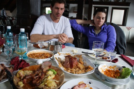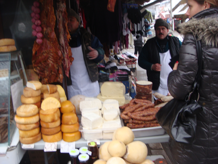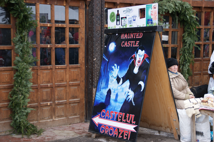There is an open air market with traditional Romanian products just below the castle. The boys got a bottle of homemade Tuica, a spirit made from plums, to bring some warmth to us in the extreme Transylvanian cold! We also tried some local cheese or even better local Brânză. Specifically we tasted Brânză de coşuleţ which is made of sheep’s milk, which had a very strong, yet delicious taste and a semi-soft texture.