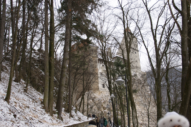 As we looked up the hill, the castle stood out and the snowy wind that blew and shook the trees made the atmosphere spooky. The setting was really out of a Coppola movie!