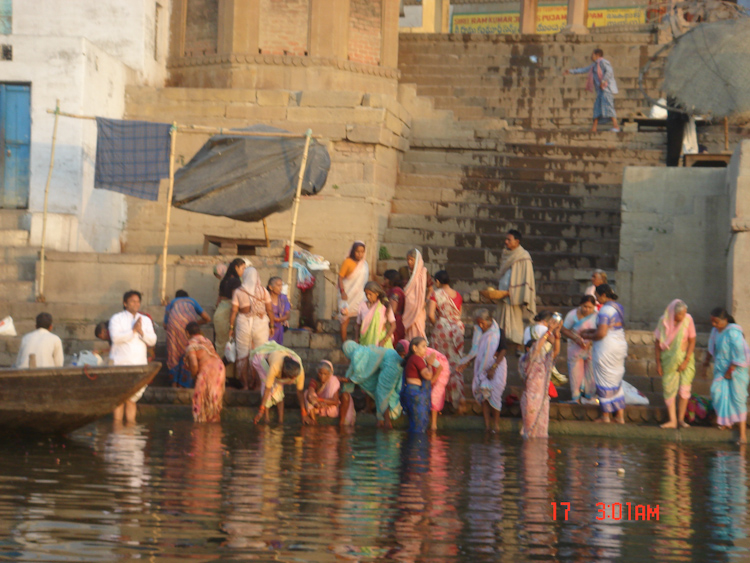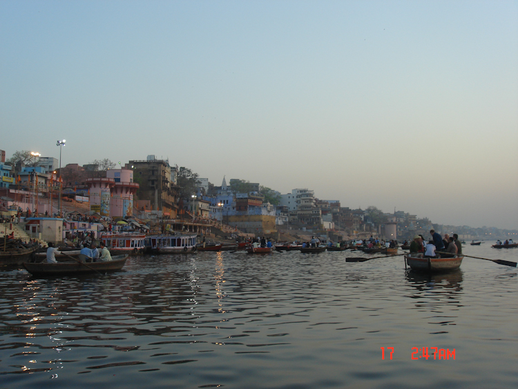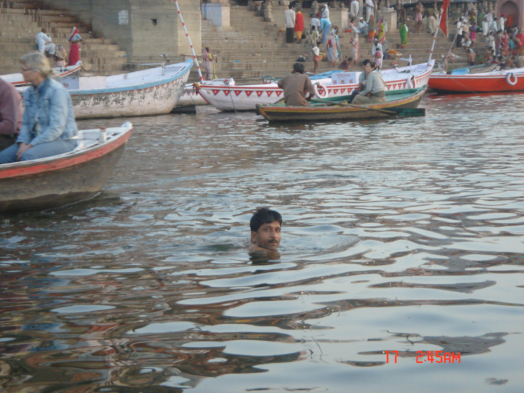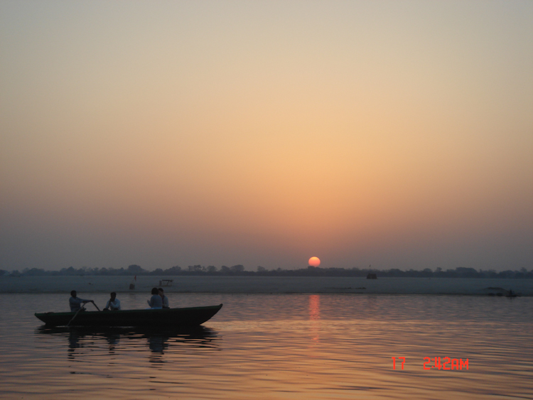 We had a boat ride on the sacred river twice; one at dawn, where the colours of the sun rising as well as the images of bathers and pilgrims on the bathing Ghats washing themselves, praying and swimming in the river, were simply amazing.