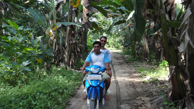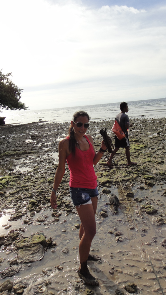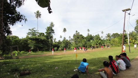 As there are no cars in Bunaken, we stopped an ojek (bike) and he took us around the island to see the more far villages and beaches. It was funny as we went to a beach were Agra’s feet got stuck in the mud and she thought she would drown in the muck. We also went with a local to watch a football match. Football is the only sport played in Bunaken and the locals are very good players.