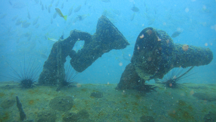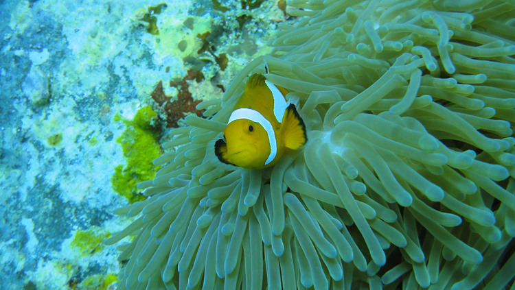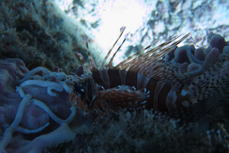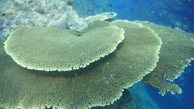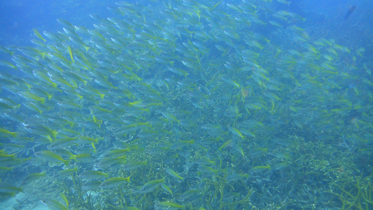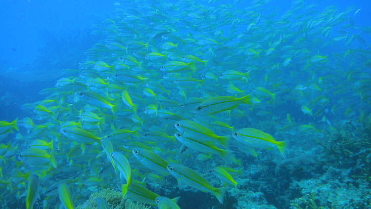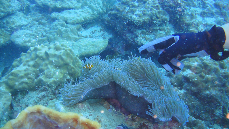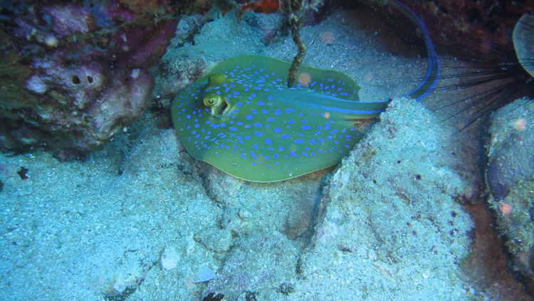 A multi coloured coral garden that extends from a rocky headland, gently sloping down to 22m. North of the big island, this site is great for afternoon dives, and is also suitable for snorkellers.