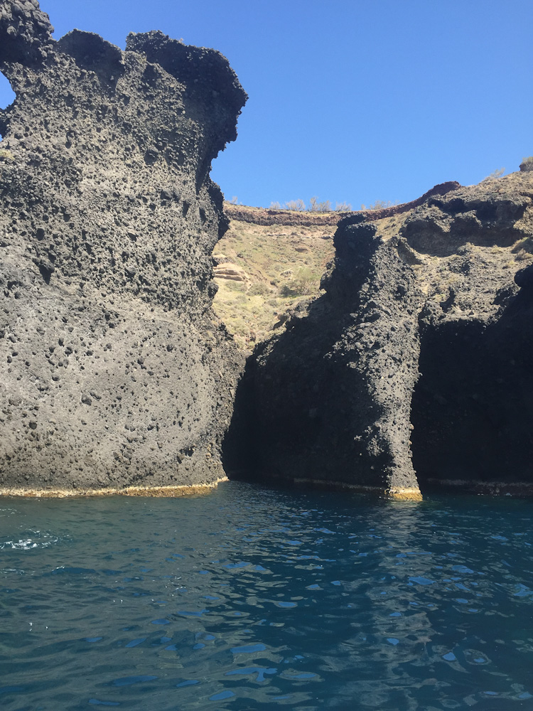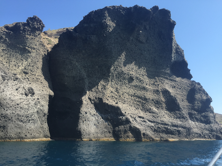 The amazing rock formations, the huge boulders, the lava, the numerous caves and caverns, the large pinnacles and the several reefs are what make Santorini’s dive sites unique! I had seen the very distinctive island formation and colors (beaches and lava) before but I did not expect to see such an interesting underwater world; really different and wild underwater scenery.