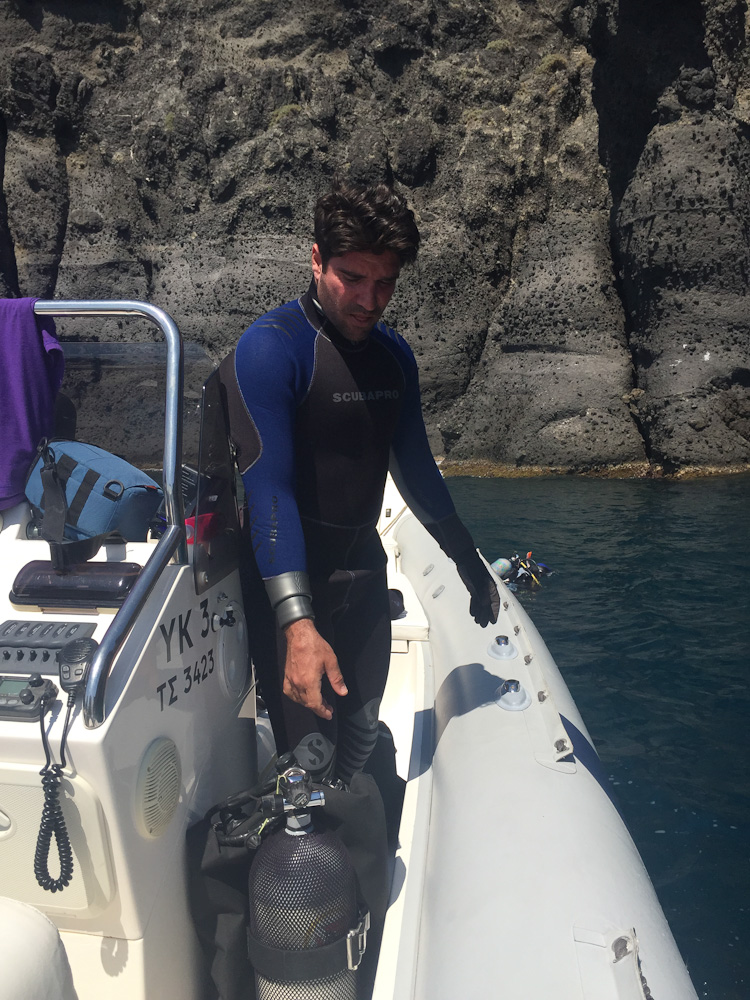 In Santorini I went diving with Volcano Dive center (http://scubagreece.com) which is located in Kamari beach, in the southeastern part of Santorini. The dive Center met high diving and professionalism standards for sure. Excellent equipment and facilities ( e.g. all equipment are Scubapro ) and they have 3 very spacious and comfortable dive boats which are very well maintained and suitable for all weather and winds.