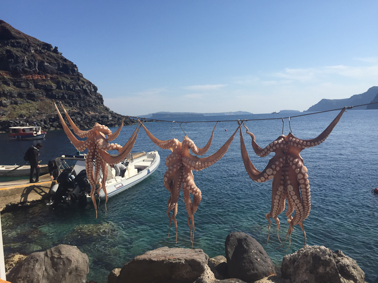 I rented, together with my friends, some GoPro cameras from the dive center and explored a few dive sites which I will write all about in another post. We also went with Volcano Dive Center on a private dive day trip which included two dives (Caves and Palaia Kammeni ship wreck) and then we had arranged with the instructor to take us for lunch with the boat to Ammoudi, a lovely area under Oia with many fish taverns with excellent cuisine. We went to Dimitris Ammoudi Taverna and really enjoyed our lunch and by sunset we were off back to Kamari.
